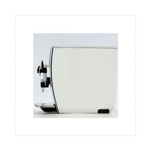 The smooth, clean lines and elegant accents make the Jura-Capresso Impressa J5 an aesthetic masterpiece from any angle. A rich platinum metallic treatment for the front and top with tasteful chrome accents contrast with the glossy piano white side and back panels. Adding a new level of convenience the well-designed and used-friendly rotary dial allows you to override any settings for coffee and steam. Pushing the integrated rotary button allows you to enter 11 programming options. All functions and settings are clearly communicated in the alpha-number LED display. New Ceramic Valve technology shortens the flow of coffee resulting in a hotter temperature and more crema in your cup for the best in high-pressure brewed coffee, espresso, latte and cappuccino. World's first Butterfly Coffee Spout: dual coffee spout design moves up/down and in/out (butterfly-design) to accommodate a larger range of cup sizes. Unique triple temperature setting for hot water output produces a hotter Cafe Americano and accommodates a larger variety of tea preparation. The 18-bar pump combines with a fast-heating stainless steel lined thermoblock that delivers cup after cup of coffee with no downtime. Within seconds the J5 is ready to deliver unlimited amounts of steam to heat and froth milk.